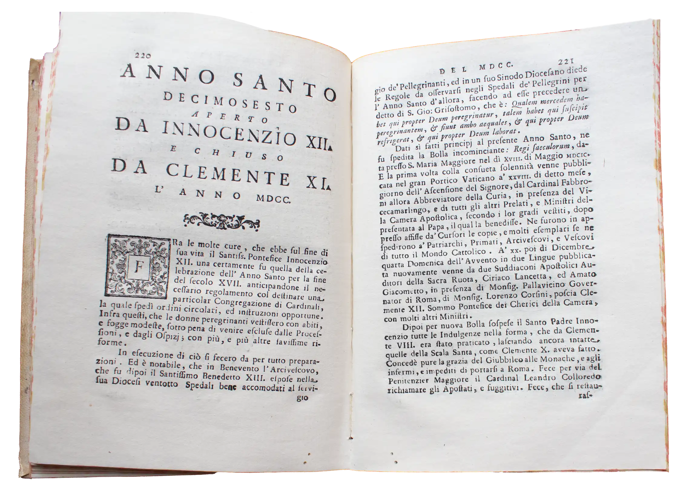 Istoria degli Anni Santi dal loro principio fino al presente del MDCCL, tratta in gran parte da quella del P.L.F. Tommaso Maria Alfani dell’ordine de’ Predicatori da Domenico Maria Manni accademico fiorentino…, Firenze, 1750. In analogia a quanto avvenuto nel corrente Giubileo, con la morte di Papa Francesco e la proclamazione di Papa Leone XIV, l’Anno Santo decimosesto fu aperto da Innocenzo XII e chiuso da Clemente XI.