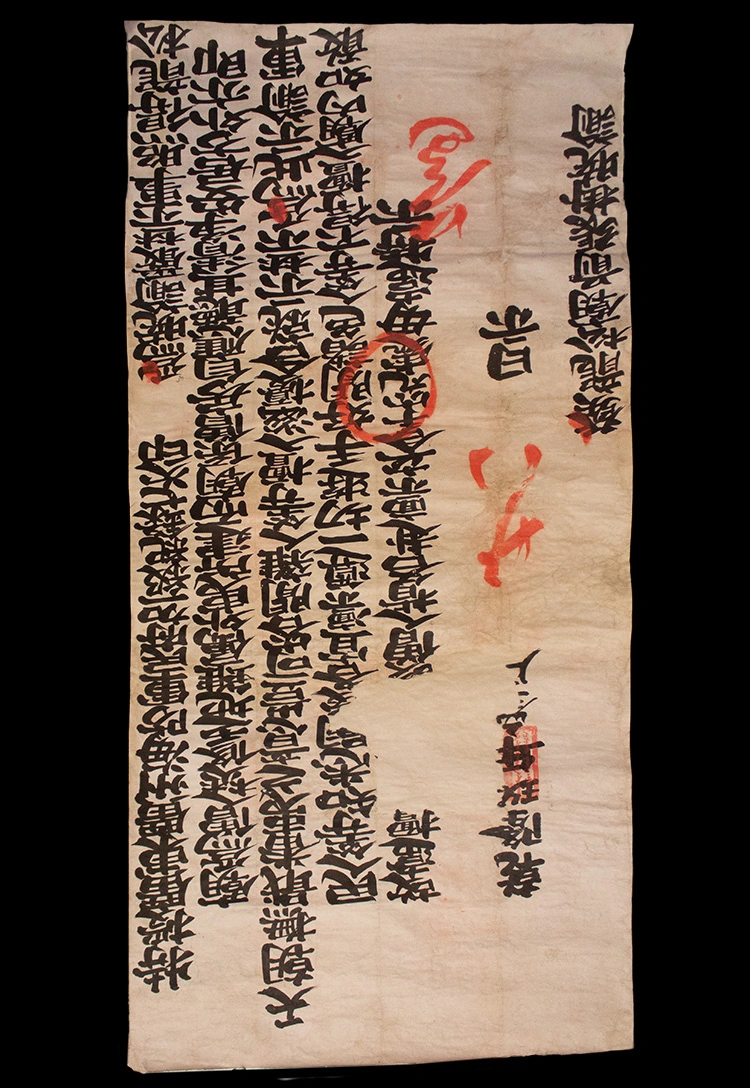 Il manoscritto fu acquistato da Ettore Novelli, il primo direttore laico della Biblioteca Angelica. Si riporta di seguito la traduzione italiana di questo lungo manifesto in lingua cinese, collocato all’ingresso del tempio in posizione verticale: “In nome del Dipartimento di Difesa Marittimo di Canton, provincia del Guandong. L’annuncio è stato stampato la settima volta. Il tempio Longsong e il terreno circostante sono stati edificati dagli stranieri (i coloni cinesi). Gli edifici pertinenti al tempio servono per i monaci, quindi gli ambienti devono essere mantenuti tranquilli. Il permesso della sua costruzione dimostra che l’imperatore rispetta la religione degli stranieri. Non è permesso nessun disordine nel tempio. Per questo motivo viene emesso il presente annuncio. I soldati e i cittadini devono attenersi alla regola. Tutti quelli che non hanno nessuna attinenza con il tempio non possono entrare nel tempio. Ogni violazione verrà punita. L’annuncio deve essere affisso davanti al tempio Longsong … il nono anno di Qianlong della dinastia Qing (marzo 1744)”.